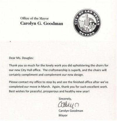 "I know Heidi Douglas/Regal Upholstery through church. When I found out she owned an upholstery shop I took some chair pads for my gliding rocker to be recovered. She helped me pick out fabric and they were made in a timely manner. I’ve been very pleased with them. I plan on using her services again in the very near future. Also I am a part of a sewing ministry through our church - Made With Love - and she donated some remnant fabric to us. What we make we give out to different non profit groups here in Las Vegas as well as our mission trips distribute items to other country’s. Can’t thank her enough for those remnants."